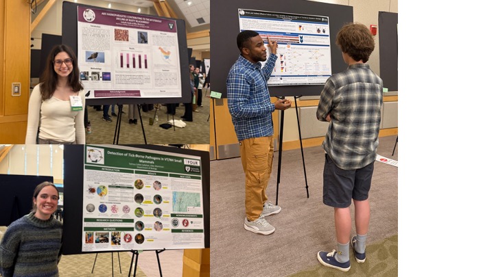 April 2026 – Three students from the lab including Isabella Soddhu, Sydney Collet-Callahan, and Carlos Amissah presented on their research on vector-borne pathogens of birds, small mammals, and ticks at the 2026 UVM Student Research Conference.